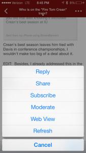 [quote name="coonhounds" post="39633" timestamp="1392511961"]If referring to responding to post I am on my phone how do I quote a post to respond to? Help Sent from my SCH-I535 using BtownBanners mobile app [/quote] Couple options, tap the post you want to respond to and hit quote [attachment=444:ImageUploadedByBtownBanners1392515149.024092.jpg] Hit the three dots in the upper right and reply [attachment=445:ImageUploadedByBtownBanners1392515177.107388.jpg] Go to settings and turn on the Quick Reply bar [attachment=446:ImageUploadedByBtownBanners1392515240.340825.jpg] Sent from my iPhone using BtownBanners