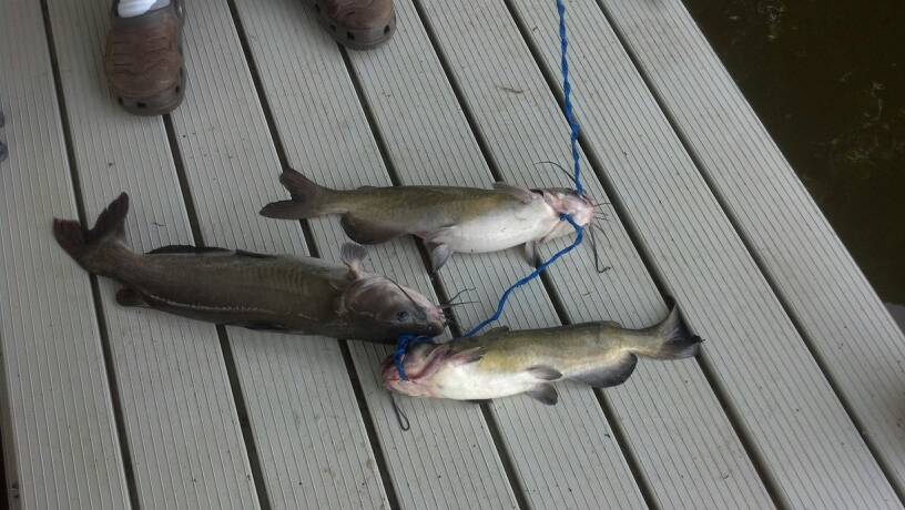 Here are some of the catfish we caught (two were mine). The picture doesn't do it justice, but one was about 7 or 8lbs, while the other two were about 4 or 5. I wanted to get a better picture holding my fish, but it got too dark and we let some other people take them. Sent from my DROID4 using BtownBanners mobile app