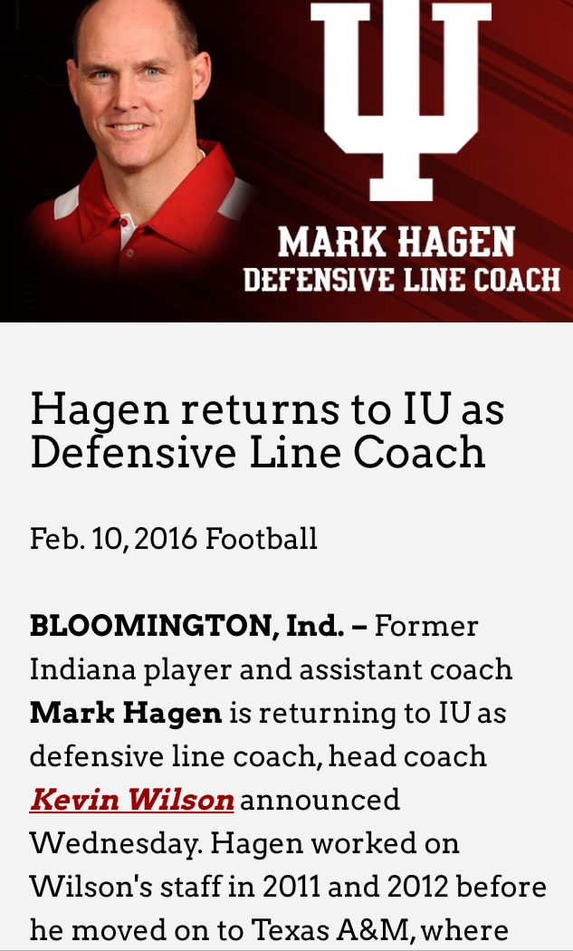Looking at his profile I'd forgot how good of a recruiter he was for us. He was the primary recruiter for all of the following Wes Rodgers Jason Spriggs Danny Friend Shawn Heffern Chase Dutra Jacob Bailey Ralph Green Plus A ton of 4* guys at A&M Ryan Kerrigan (PU/NFL) Kawan Short (PU/NFL)
