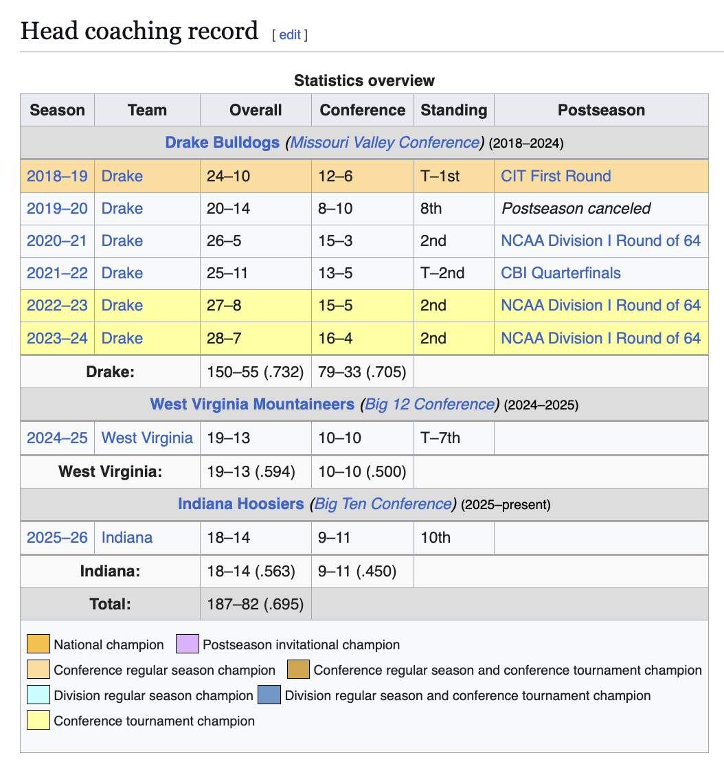 I mean, we all agree teams win some they shouldn't and lose some they shouldn't, right? On paper, it's hard to argue that the Iowa's staff did not significantly outperform Indiana's staff this year. They also have only one player who was rated in the top 100 out of HS as far as I can find. The core of their elite 8 team came from D2, Wyoming, Robert Morris and some HS kids that McCollum identified and secured with far fewer resources than Indiana's. The tournament is single elimination so it's fair to not weight it super heavily when assessing a season, but that doesn't mean you can't draw meaningful insight from it. Single elimination tournament amplifies the importance of coaching (see Dan Hurley vs Duke this past weekend). McCollum is 4-2 in March Madness two years into being a D1 coach. Including knocking off #1 seed Florida, defending champions. DDV is 0-3 in 8 years as a D1 HC. Iowa also has much more straightforward roster construction than we do. Way more returners. He had a much better year 1 than we did, it's okay to admit that. -