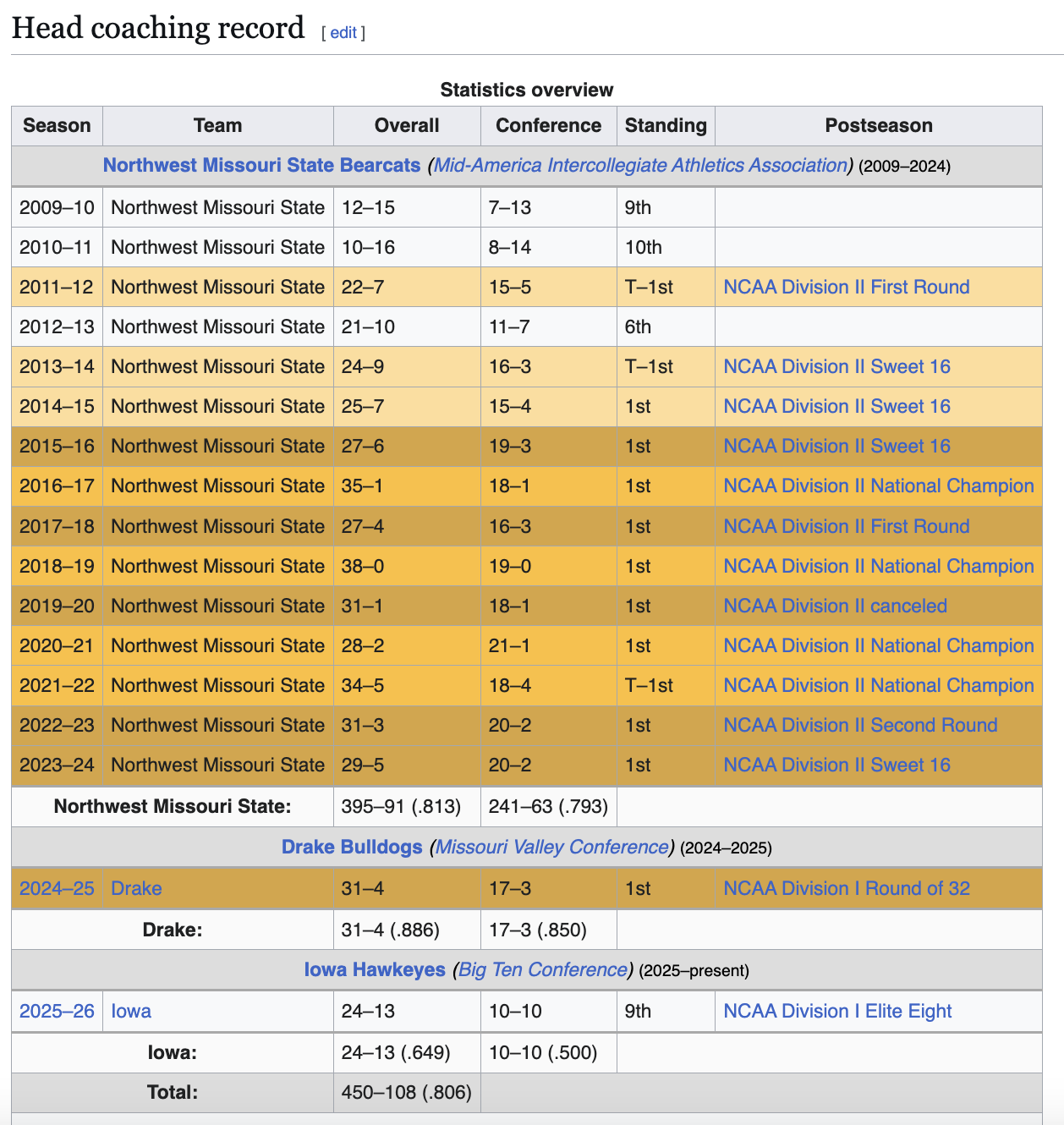 Hopefully! I'm not saying he's a terrible coach, just not better than McCollum IMO. They got the 9th seed in B10 tournament we got the 10th seed. They were 24-13 (10-10) we were 18-14 (9-11). One of them has a .764 D1 winning percentage one of them has a .695 D1 winning percentage (also very good!) One of them is 4-2 in March Madness, one of them is 0-3. One of them won the head to head by 17... His D1 resume is better than DeVries... that's not really debatable. Hopefully DDV shows superior coaching abilities next year. Happy to drop the comparisons since McCollum never wanted to be here anyway -
