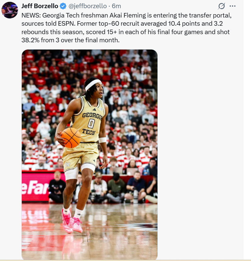 Class of '66 Old Fart Posted Wednesday at 10:03 PM Posted Wednesday at 10:03 PM Woody offered April '22; committed to Tennessee Oct. '22. Penn State guard Freddie Dilione V plans to enter the NCAA transfer portal, @JoeTipton reports. Dilione averaged 14.0 points and 3.2 rebounds per game last season. RaceToTheTop 1 Quote