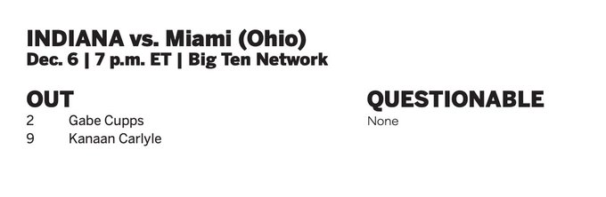 IUBB vs Miami (OH) - Friday, 12.06.24 @ 7:00 on BTN