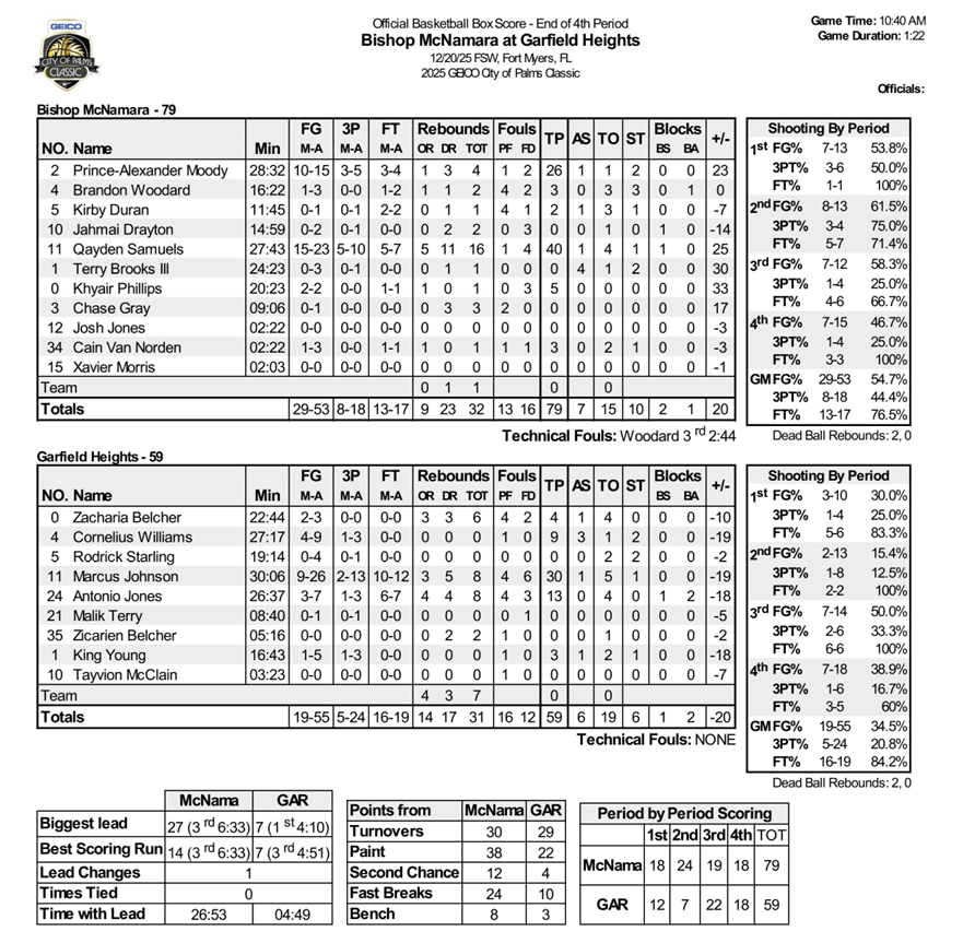 Demo Posted December 20 Posted December 20 9 minutes ago, Class of '66 Old Fart said: 79-59 win for McNamara over Garfield. Their next game is Monday at 12:40 pm vs. Long Island Lutheran. The Lutheran game will be an excellent watch. Assume Moody will get most of the defensive assignment on Dylan Mingo. Quote