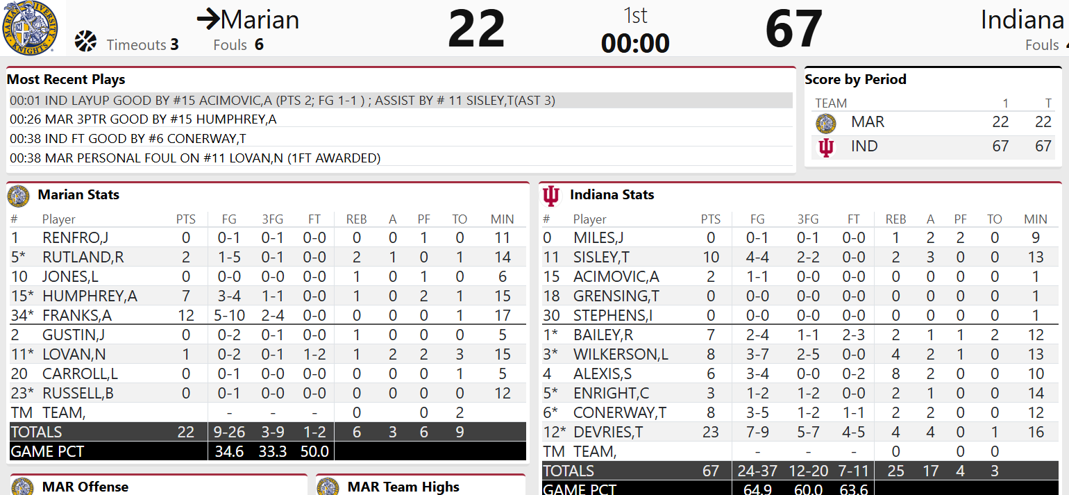IU vs Marian (Exhibition) 10/17 7:30 B1G+