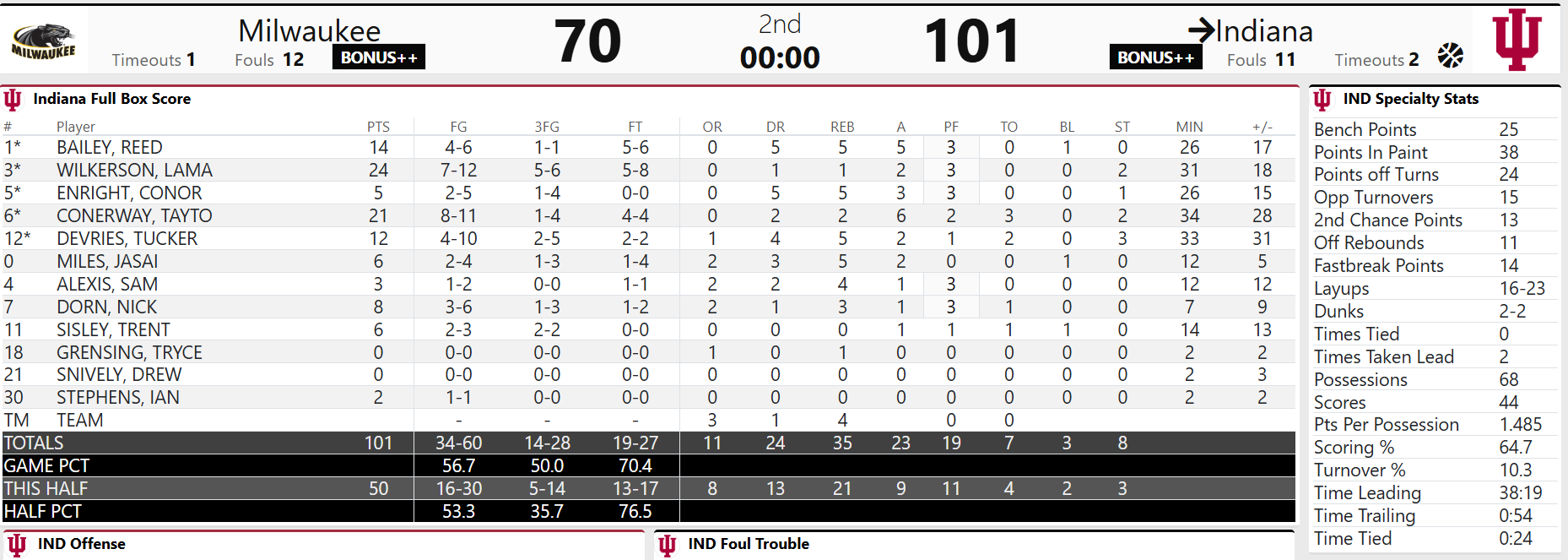 IUBB vs U of Wisconsin - Milwaukee - Wednesday, 11.12.25 @ 7:00 on FS1