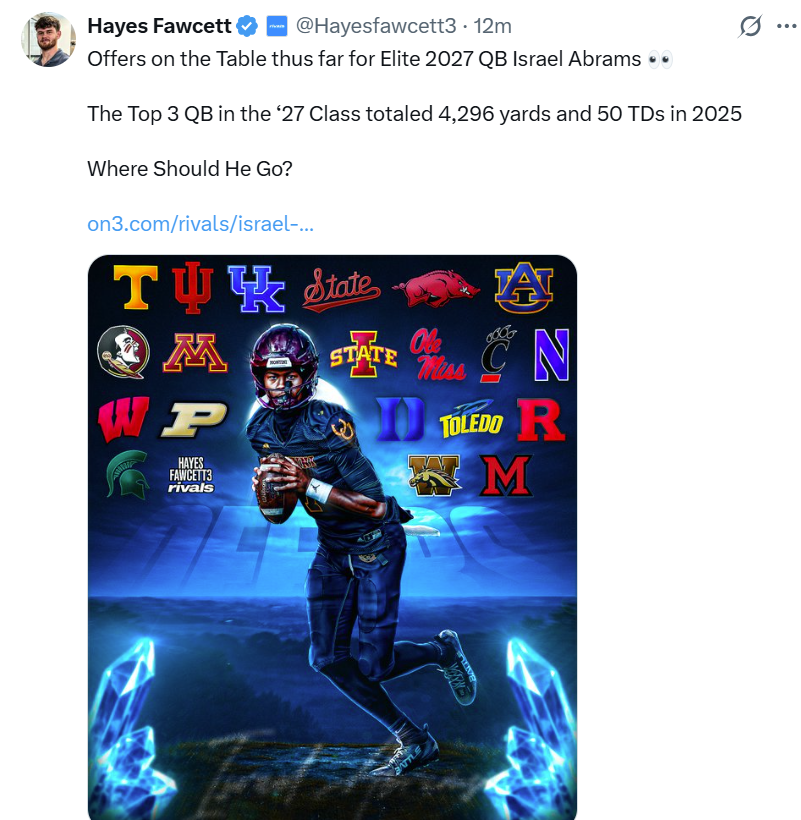 Hurryin' Hoosiers Posted Thursday at 02:07 PM Posted Thursday at 02:07 PM On 2/1/2026 at 11:35 AM, Class of '66 Old Fart said: Don't follow football recruiting all that closely but this is the first I believe I've seen this name mentioned. he should get NIL with delta fawcett Quote