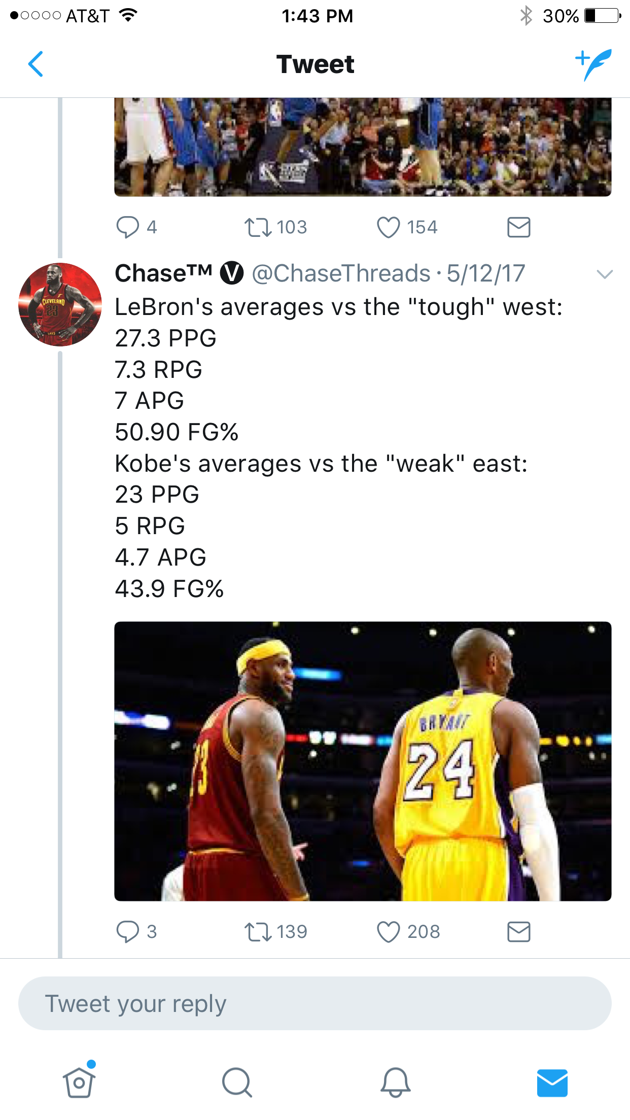 Lol Kobe won 5 titles playing in the tougher conference with significantly less help from the officials.